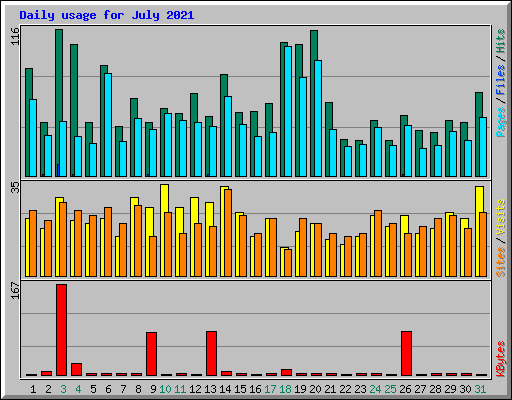 | Day | Hits | Files | Pages | Visits | Sites | KBytes | ||||||
